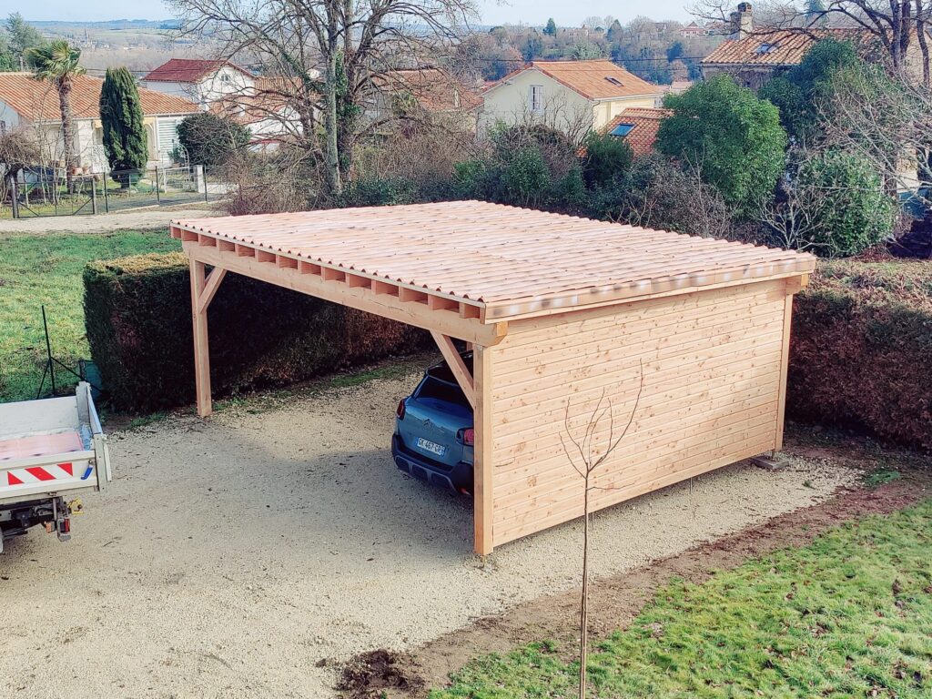 Carport 2 voitures à Ribérac – réalisation bois sur mesure et durable En savoir plus